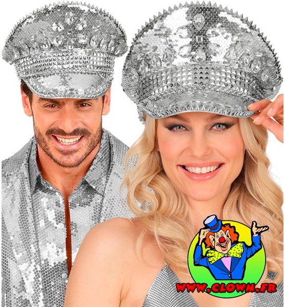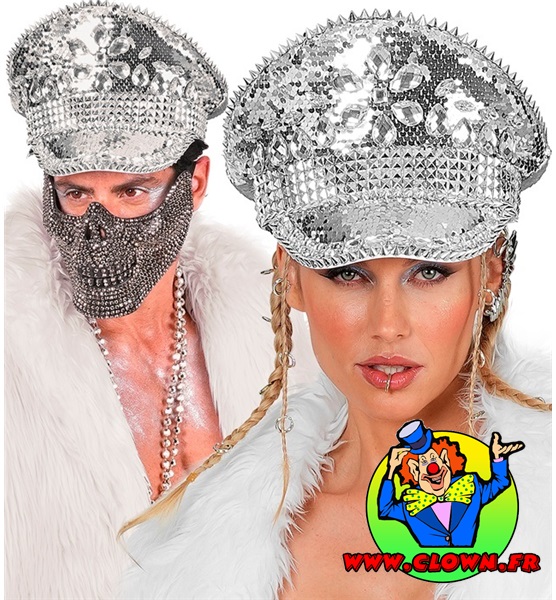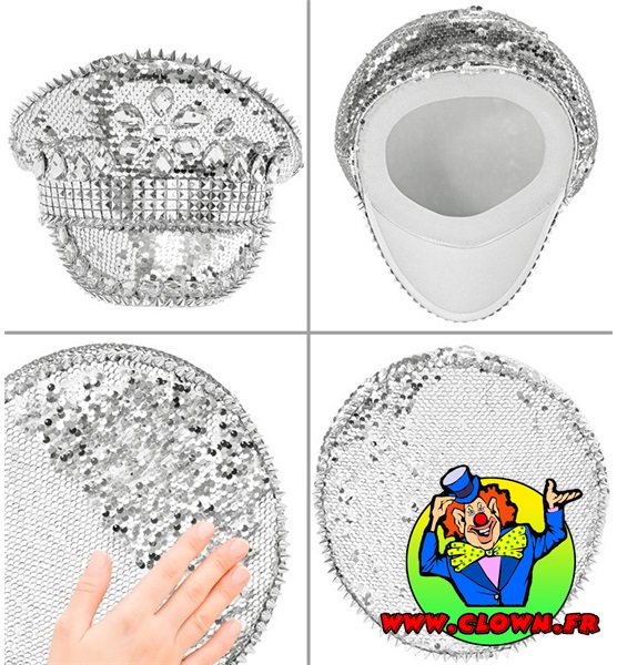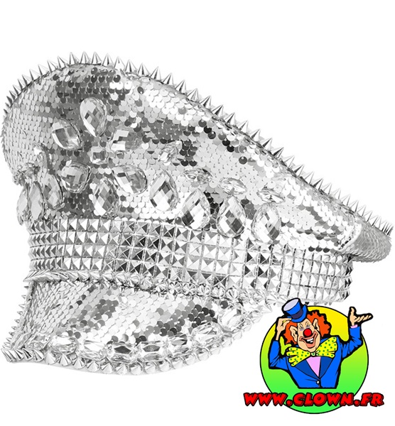 Chapeau festival avec clous, bijoux et paillettes argent