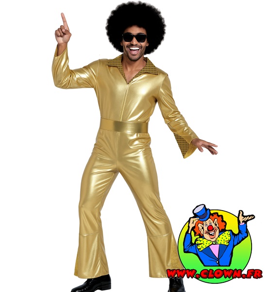 Costume Disco gold cowboy comprend la ceinture et la combinaison