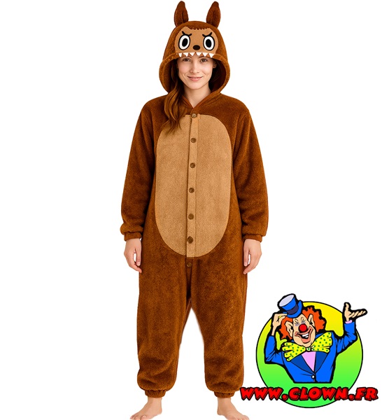 Déguisement lulu monster pyjama brun femme
