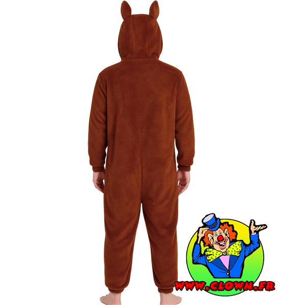 Costume lulu monster pyjama brun femme : la capuche et la combinaison