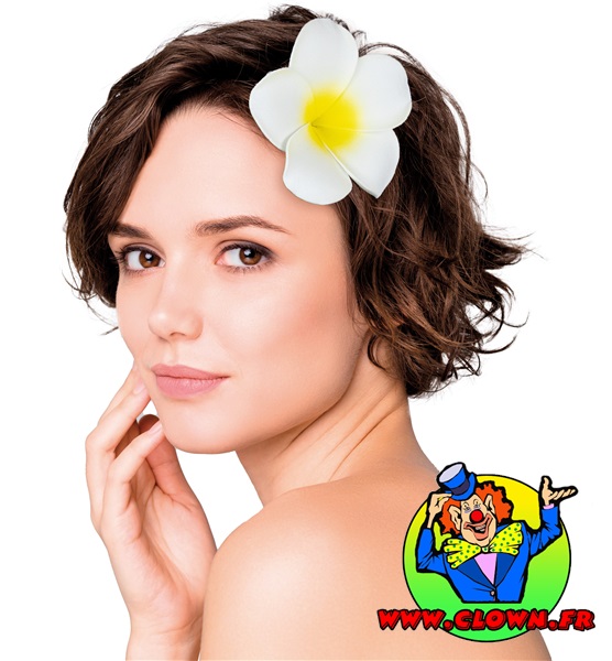 Set de deux magnifiques barrettes en forme de fleur de frangipanier – Très réalistes et élégantes dans une coiffure. 🌺 Signification : à gauche → engagée ou mariée, à droite → célibataire et disponible. À vous de jouer avec le langage des fleurs polynésiennes ! Caractéristiques : diamètre de la fleur : 9 cm – matière : EVA – clip métallique type pince crocodile (env. 3 cm)