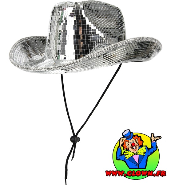 Chapeau cowboy disco argent boule facette