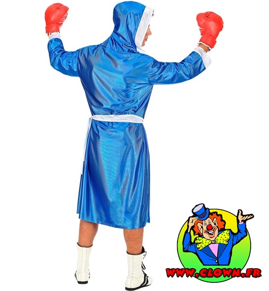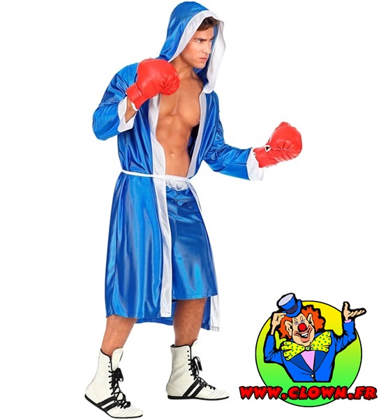 Costume boxeur bleu comprend la cape avec capuche, la ceinture et le shorts