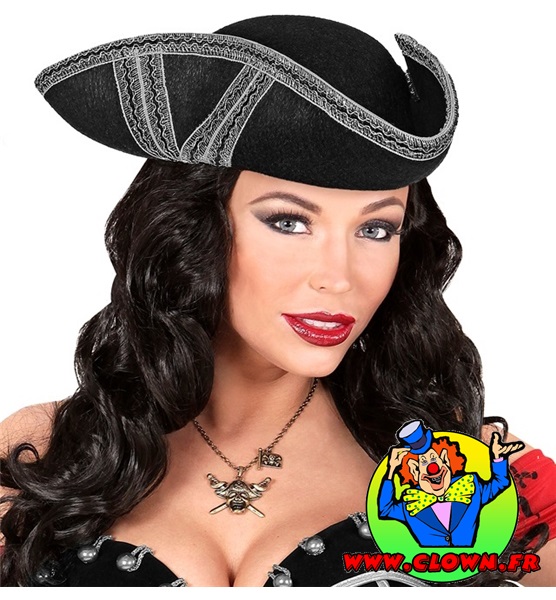 Tricorne avec garniture argent en feutre